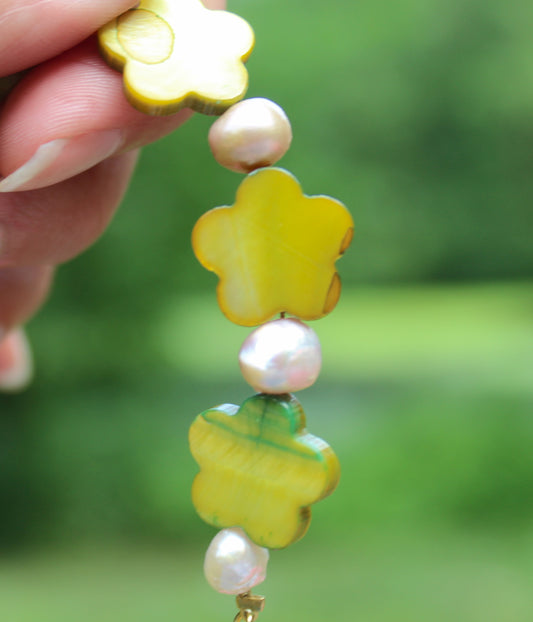 Green Mother Of Pearl Flower Bracelet