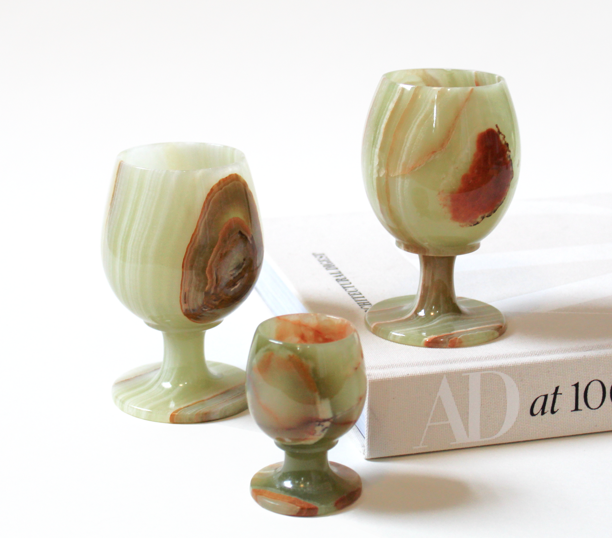 - PLEASE NOTE: Onyx Chalices vary in marbling. We cannot guarantee the colors and shapes of patterns.